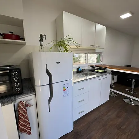 The holiday home offers an equipped kitchen featuring a refrigerator and an oven. - ❓